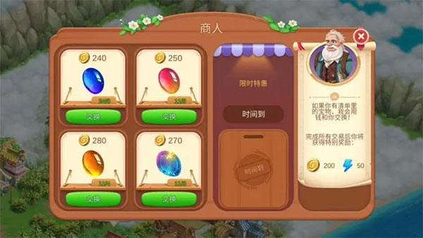探险家们在地图中探险的过程中,会出现随机出现的商人,与他们交换手中宝石可以获得奖励,在完成所有交易后可获得一定量的金币与体力,不能错过哦。
