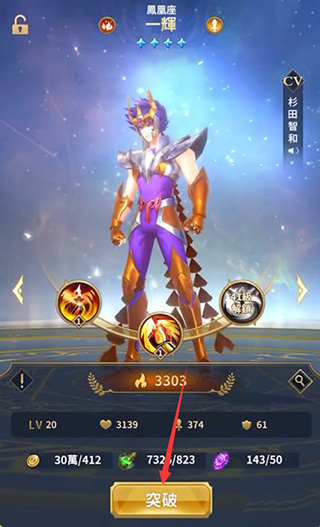 4、选择自己喜欢的圣斗士角色,通过战斗,不断的升级你的圣衣,成为最强的圣斗士