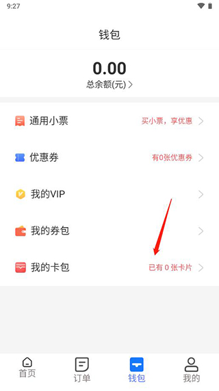 2、当前持卡数量为0中,点击我的卡包就能绑卡;
