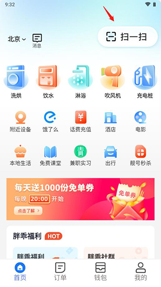 3、找到该设备之后就能点击右上角的扫一扫,对准设备上的二维码,扫码启动后就能使用该设备。