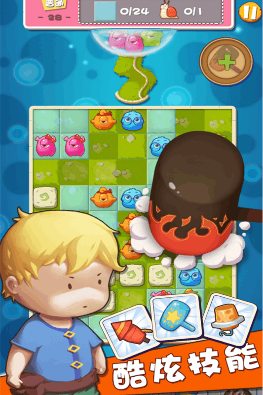 糖果小怪兽会吃掉你的糖果,非常的令人讨厌!在它旁边消除1次就可以将其打晕。趁它眩晕时再消除1次就可以将它彻底赶跑了。要注意假如打晕后没有立即进行第2次消除,它可是会醒来跑掉的哦!